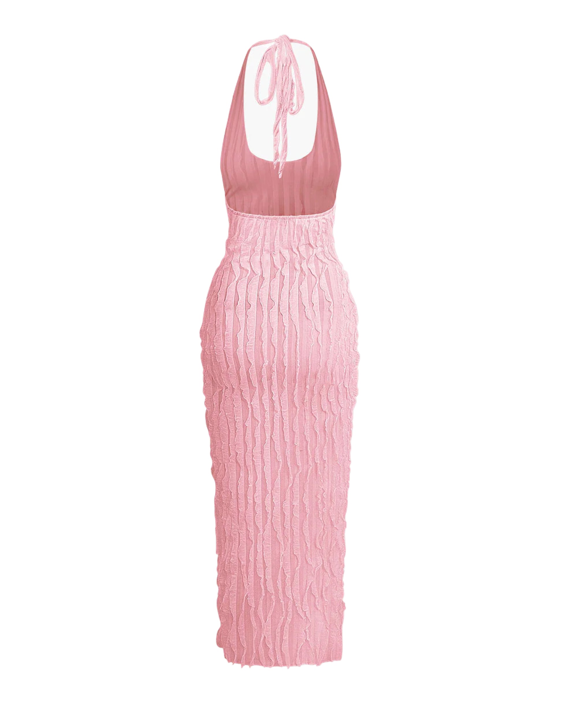 Indulge in the seductive allure of our "Temptress" Dress. Crafted from soft pink textured fabric, this halter midi length dress exudes elegance and sophistication. With its alluring silhouette and irresistible charm, it's sure to make a statement at any event. Embrace your inner temptress and elevate your wardrobe with this must-have piece.